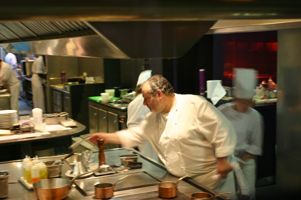 Well, folks, I have to tell you that your gift was thoroughly appreciated by us. We took the Menu Primavera – a 10 course (I think, but I lost count!) meal that started with “aromatic eggs” and ended with coffee and petit fours. The aromatic eggs were sublime – a hen’s egg filled with an egg foam flavoured with rosemary, and a quail’s egg filled with a egg foam flavoured with ginger. The quail’s egg in particular made me think I’d died and gone to Heaven. Along the way we had mackerel, a bouillabaisse flavoured with saffron, baby octopus with macaroni, sweetbreads, sorbet (pear, strawberry and mandarin), and peanut icecream with a caramel tart. To accompany this magisterial meal we had a bottle of Cuvée Santamaria Finca Montagut, a bottle of Alíon 2000 and a glass of Moscatel Soleado Colosia with dessert.