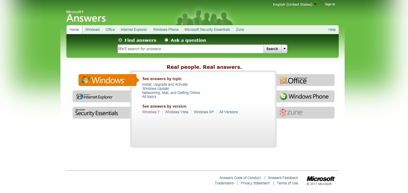 For example, look at the home page of the Windows Expert Community above. You’ll see a link to the Microsoft Answers forums, but no mention of the Windows Live Solution Center forums. Now look at the home page of the Microsoft Answers forums: