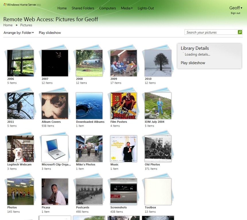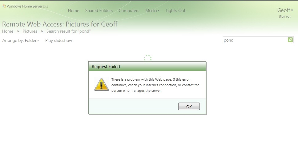I had thought of using the media library facility via Remote Web Access to enable friends and relatives to browse through my photos. So, when I click on the βBrowse Picturesβ link, it seems that for 50% of the time, I get an error message, instead of a view of the Photo Folders: