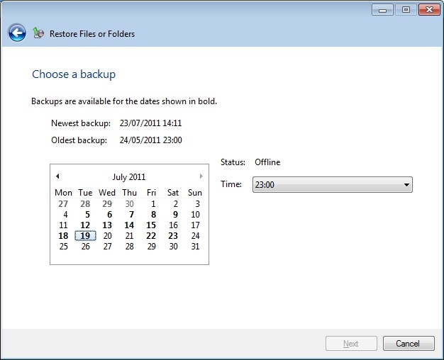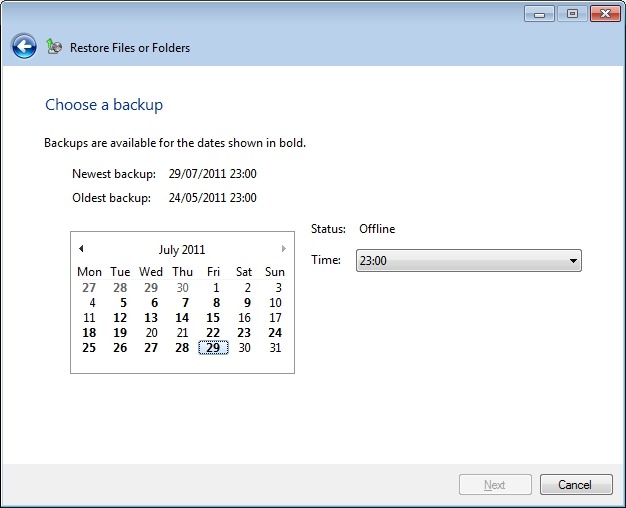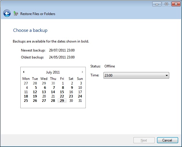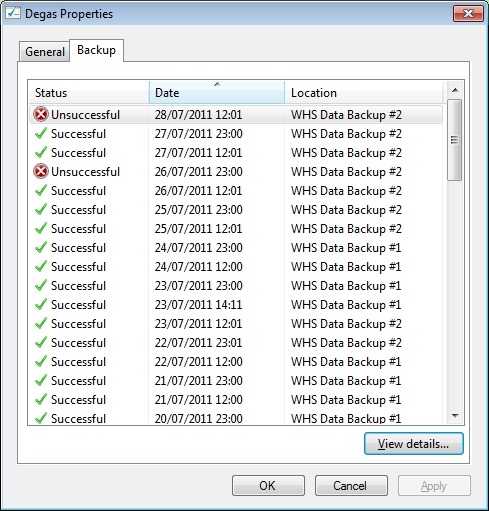 But, what’s this? WHS 2011 is still claiming that backups are available from backup drive #2 (e.g. the backup of 29 July at 23:00):