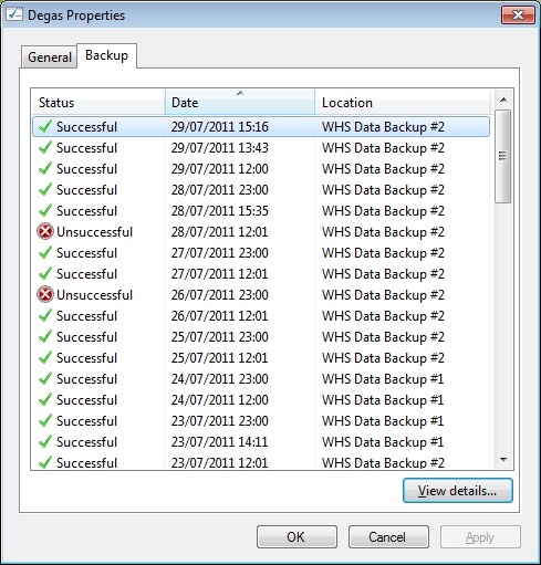… if I click on the “View details…” button shown above, I am told that while the backup was unsuccessful, it does seem to have successfully backed up all the drives and folders that it was supposed to: