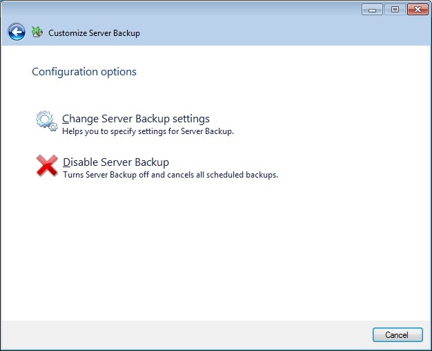 Right, so I suppose I need to choose the “Change Server Backup settings” option. So let’s do that…