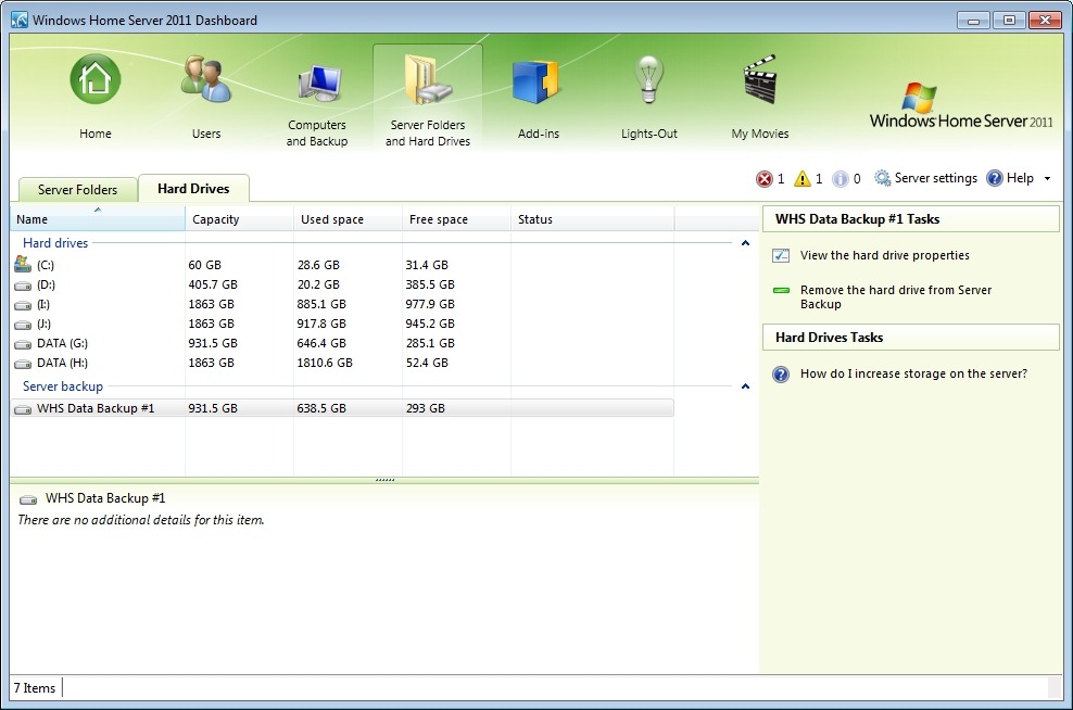 [Update 31 March 2014: It appears as though there has been some improvement made to the Server Backup function in the Dashboard since I originally wrote this article. It remains the case that WHS 2011 continues to use the VHD format for backup, which has a maximum capacity of 2TB. However, it now appears (contrary to what Microsoft originally stated) as though the Server Backup function can now deal with multiple VHDs, providing the backup drive is big enough. So, if your backup drive is 4TB, that means you can have 2 VHDs of 2TB created on it. That, in turn, means that you can backup up to 4TB of data from your data storage drives (with a maximum of 2TB for any one drive). That’s a theoretical maximum, since Microsoft also recommend having some free space in the VHDs to handle incremental backups.]