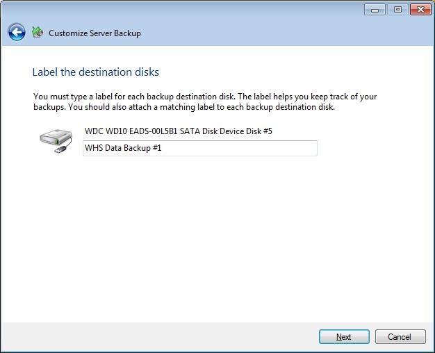 This time, I make it to the next screen, which has the existing name of backup drive #1 already filled in: