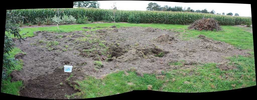 One of our neighbours solved the mystery for us – we have a plague of Cockchafer larvae, known as Engerlingen in Dutch. Apparently, we’re not the only ones around here, it’s becoming a common problem in this area.