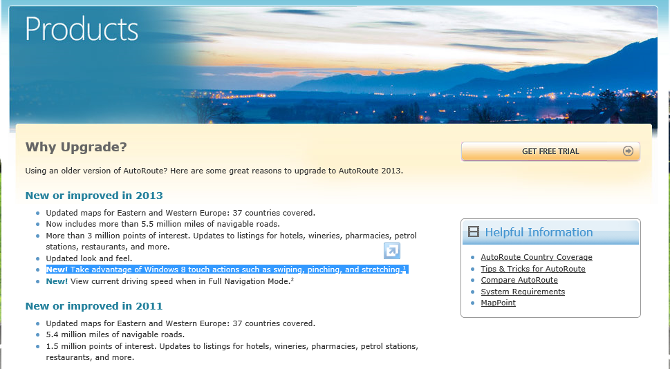 What I find truly ironic about this is that Microsoft trumpets the fact that AutoRoute 2013 now has support for the Touch features of Windows 8:
