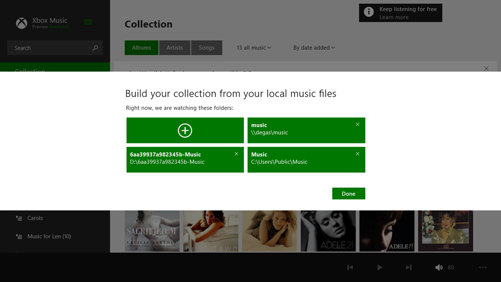 Here’s the three locations currently defined for the Music Library on the system with the errant Xbox Music App: