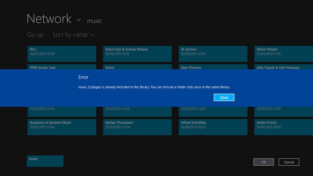 Update 17th October 2013: I’ve just installed the final release of Windows 8.1 on my tablet, and the Music Library is now being accessed correctly by the Xbox Music App, so it looks as though the issue is now resolved. However, when one issue is resolved, another pops up.