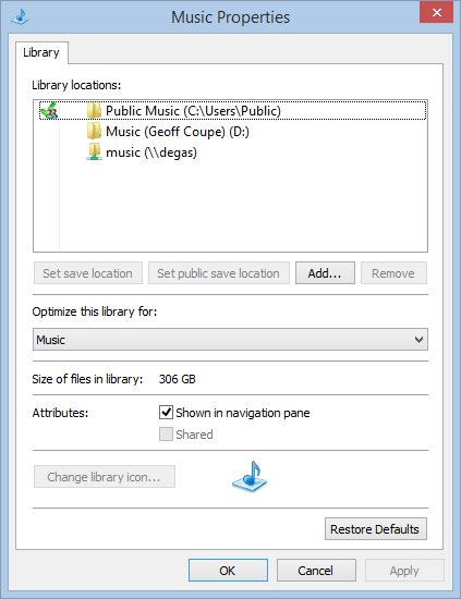 Is this the same for all the locations currently defined for the Music Library? Let’s find out.