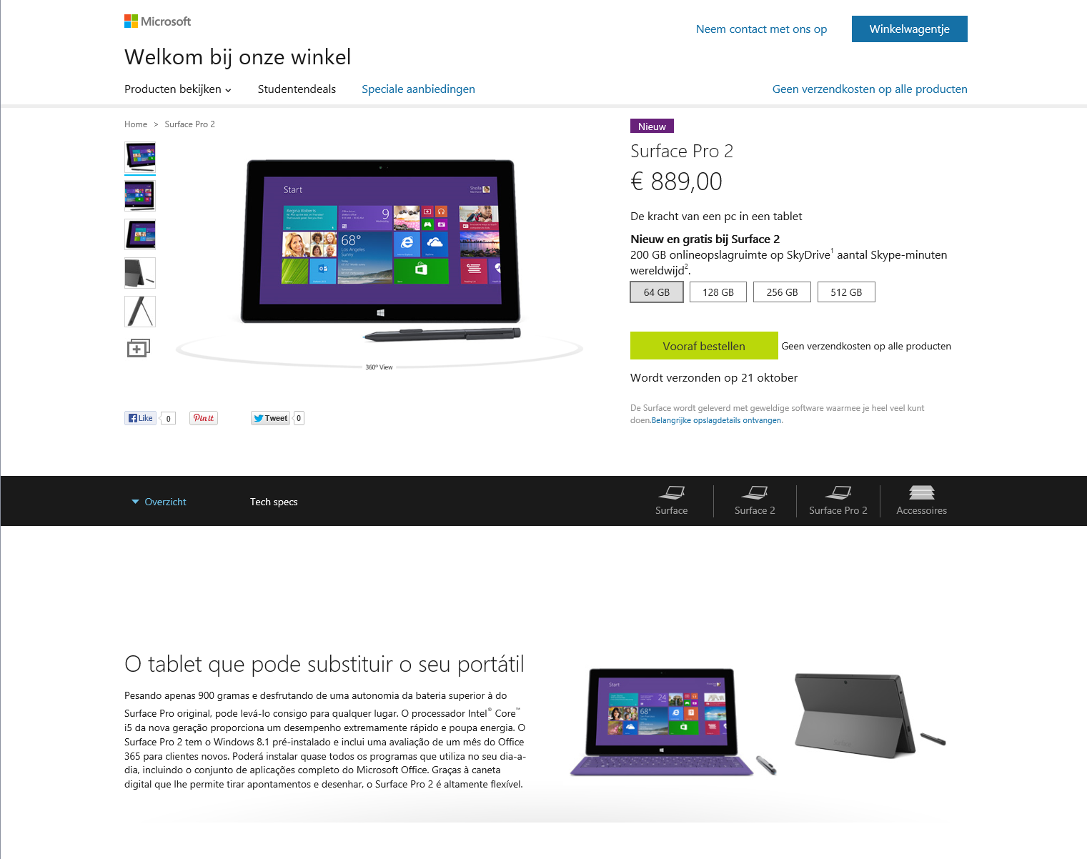 I was reminded of the old joke about the fully automated system when I looked at Microsoft’s web page for the pre-ordering of Surface Pro 2. Half is in Dutch, the other half is in Portuguese.