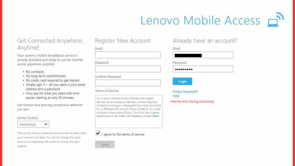 As a trip is coming up, I tried to connect via LMA a few days ago to check that everything was working. However, the connection failed – see the screenshot with the “internal error during processing” message.
