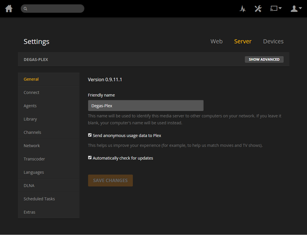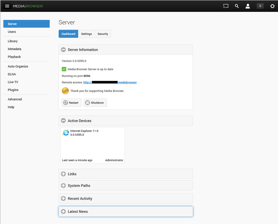 I’ve been looking at a couple of other alternatives over the past few months: MediaBrowser (now called Emby) and, more recently, Plex. They both have their strengths and weaknesses. A major strength of both of them (as far as I’m concerned) is that they both use a client/server architecture. That is, the core component of both is a media server to which a wide range of clients (TVs, HTPCs, PCs, tablets and smartphones) can connect and play the media. Since I hold all our media on a Windows Home Server 2011 system, that would be the logical place to install and run the media server. For both MediaBrowser and Plex, the media server can be administered on the WHS 2011 system via a web interface.