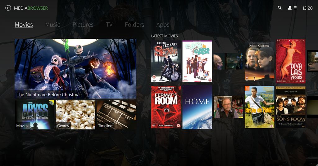 One area where MediaBrowser and Plex has surpassed Windows Media Center is that of being able to play content on other devices. WMC was designed as an all-in-one solution, whereas both MediaBrowser and Plex have been designed as an ecosystem of interconnected server and client devices. So it is possible to browse my movie library on my Windows Tablet, or my Windows Phone; pick a movie, and then start it playing on the HPTC, and continue controlling playback from the browser device.