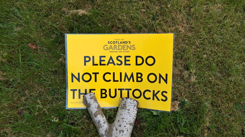 At the visitors’ entrance is the  Garden of Worthies – a row of plaques – leading to the Buttocks, complete with a notice on this day:
