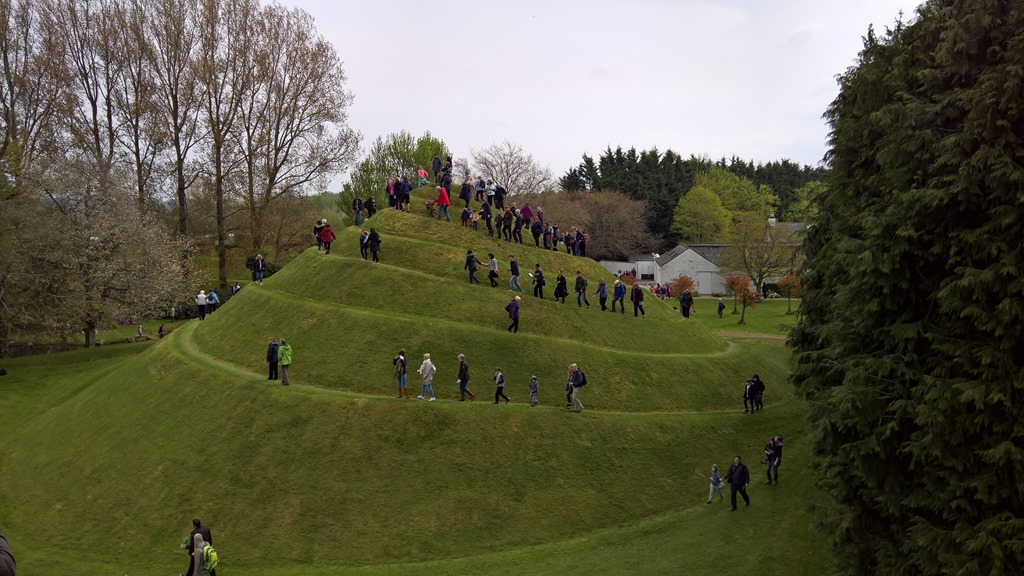 As well as visiting the Crawick Multiverse last week, I also visited another of Charles Jencks gardens: the Garden of Cosmic Speculation. Whilst both gardens share common themes, and the use of sculpted landforms, there were also marked contrasts between the two. Perhaps the biggest was the fact that at the Multiverse, there were just two other visitors aside from my brother and me. At the Garden of Cosmic Speculation, I was one of over 2,500 visitors… This was no doubt caused by the fact that the GoCS is open to the public for just one day each year, whereas the Multiverse is open every day.  The Multiverse is also relatively new – it was opened in June 2015 – whilst the GoCS was established in 2003.