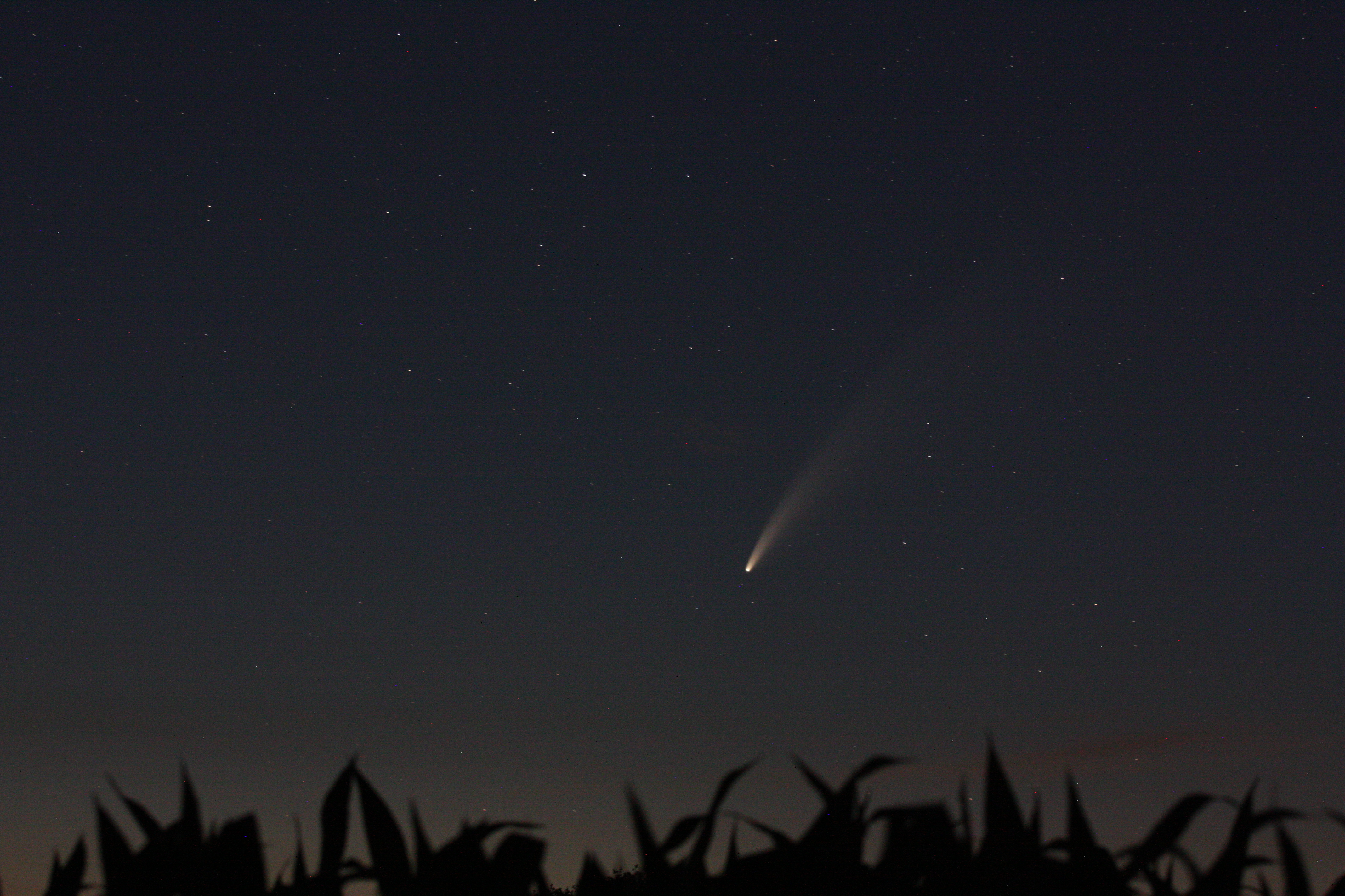 There’s a field of maize at one side of our garden. Last night comet Neowise was clearly visible above the field.