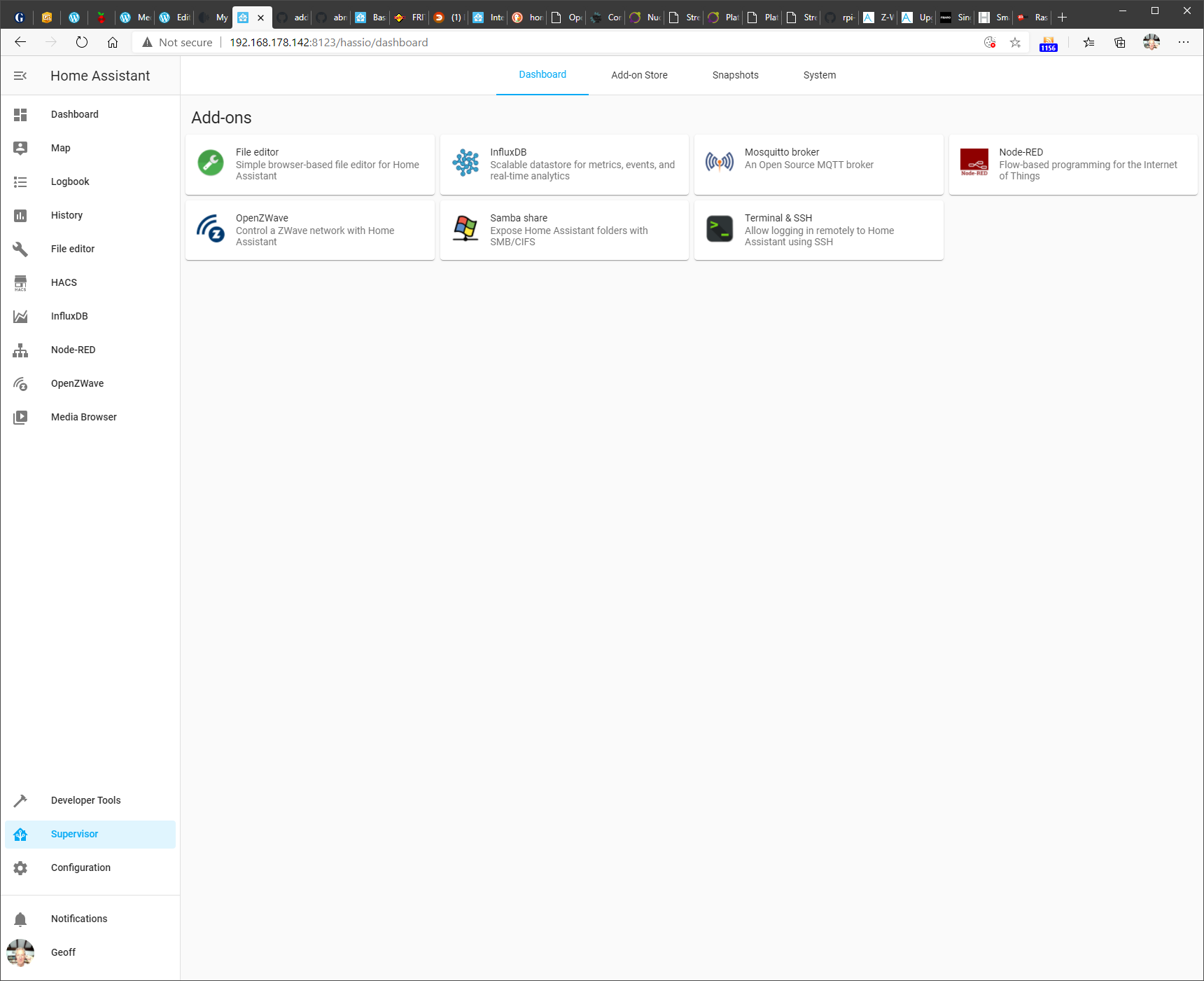 And as you can see, this is a separate administration tool – the beta does not yet have full integration of the administration into Home Assistant itself.
