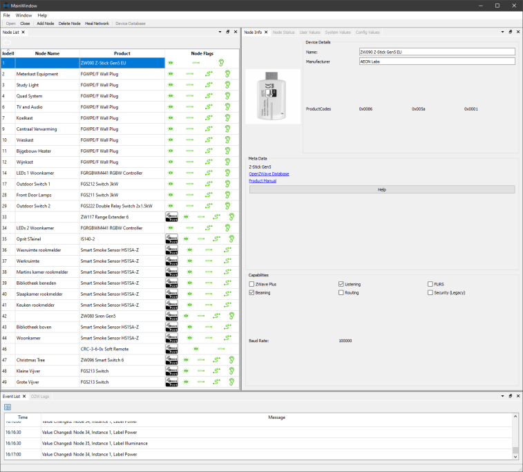 I have thirty Z-Wave devices in my network. Aside from the controller there are devices such as smart wall plugs, switches, remote control, smoke detectors and a siren. The test would be to see if this network could be successfully migrated across to Home Assistant and then managed as a production system, with the ultimate aim of retiring Domoticz in favour of Home Assistant as the platform.