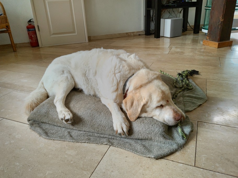 Lexie had only been with us for a short time in her life – just over three and a half years. We found her in an animal shelter in Enschede and adopted her. She settled in well, and she and Watson got on well together. Our original intention was that Lexie was to be Martin’s dog (Watson is my dog), but in the event, Lexie had other ideas, and chose me as her owner, much to Martin’s chagrin. She would follow me everywhere. We will both miss her. She was much more phlegmatic than Watson and was a calming influence in our household.