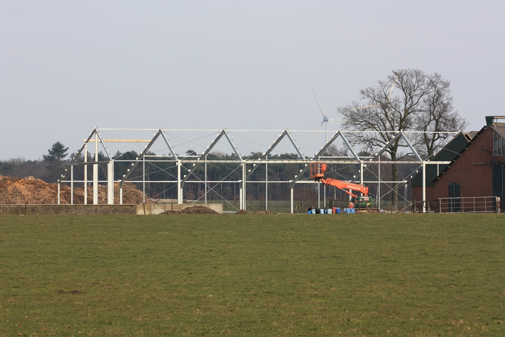 Our nearest neighbour is a dairy farmer, and he’s having a new cattle stall built. Last week, the building frame was complete, and so the highest point was reached.