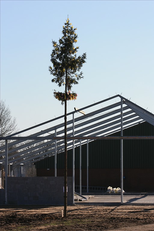 In this part of the Netherlands (the Achterhoek), there’s a tradition that when a new building is constructed, and the highest point is reached, then the neighbours will erect a Meiboom (a Maypole) alongside the building. Here’s a translation of the relevant section of the entry in the Dutch Wikipedia: