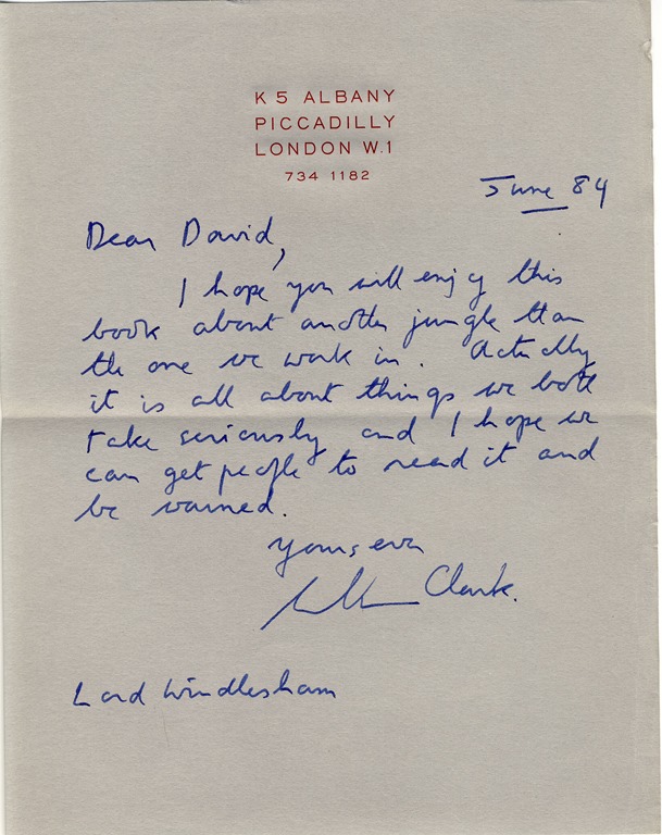 It is written on William’s notepaper, with the heading of William’s London flat in Albany, and addressed, I believe, to David Hennessey, 3rd Baron Windlesham.