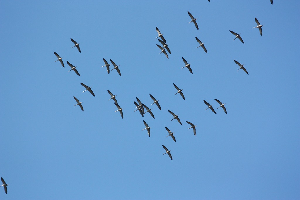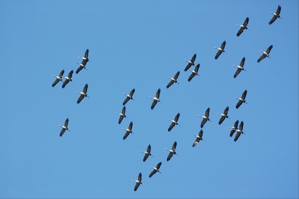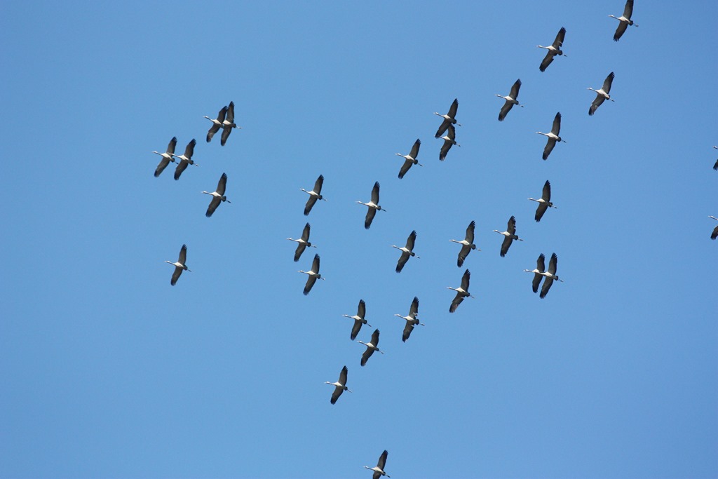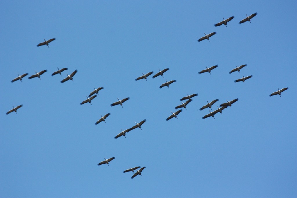 I was out working in the garden today, when I became aware of bird cries that were unfamiliar. Looking up, I saw a flock of Cranes (Grus grus) lazily circling above the house.