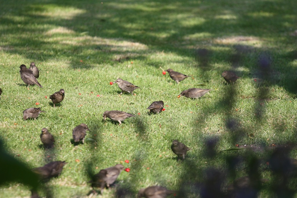 We’ve got a large cherry tree in our front garden. Every year it gives a wonderful display of cherry blossom, followed by a large crop of cherries. Unfortunately, as soon as they are ripe, an equally large flock of starlings appears from nowhere and proceeds to strip the tree of fruit in very short order. This year I managed to get there just before them and pick enough fruit to make six pots of cherry jam. The starlings got the rest…