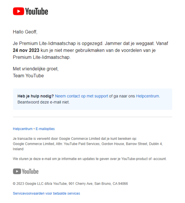 We’re writing to let you know that after 25 October 2023, we will no longer be offering your version of Premium Lite. While we understand that this may be disappointing news, we continue to work on different versions of Premium Lite as we incorporate feedback from our users, creators and partners.