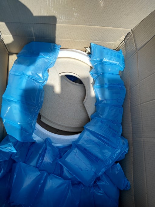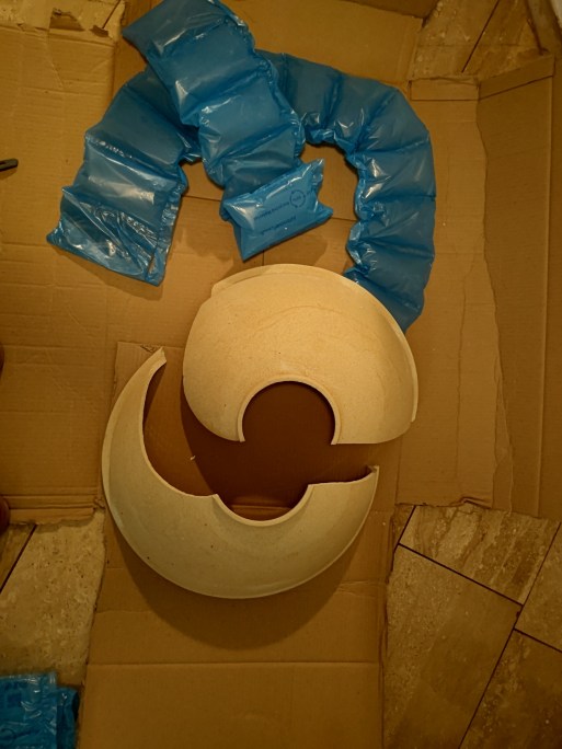 Sigh – broken in transit again; just in two halves this time. So much for the “extra secure packing” – which was exactly the same as for the first time. The issue is that the packing material they use (air bags) gets punctured in transit and the heavy bowl then rattles around in the large box and suffers damage.