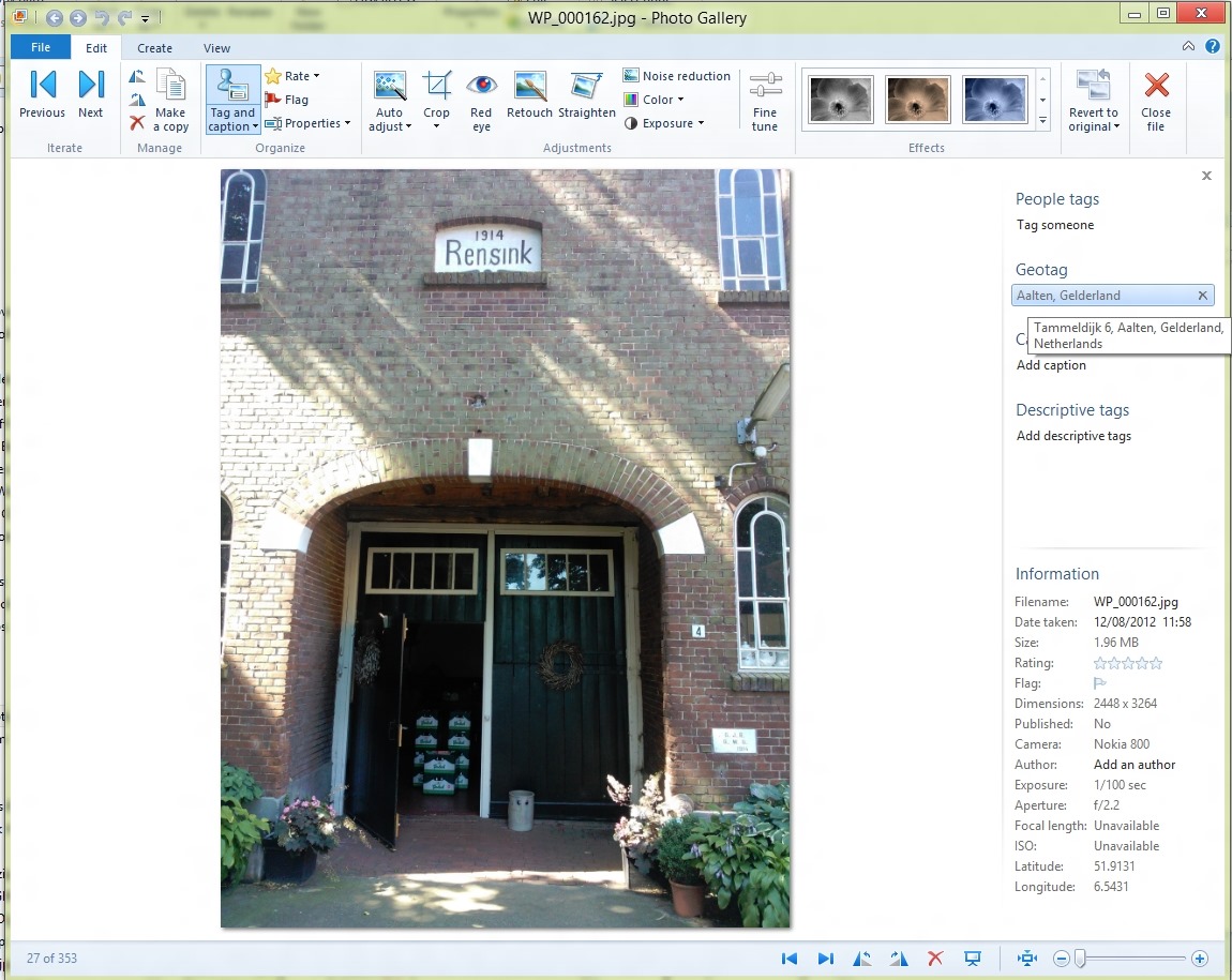 In this screenshot, I’ve changed “Tammeldijk 6” to “Tammeldijk 4”, and now when I clicked “Save”, the LocationCreated metadata was written out.