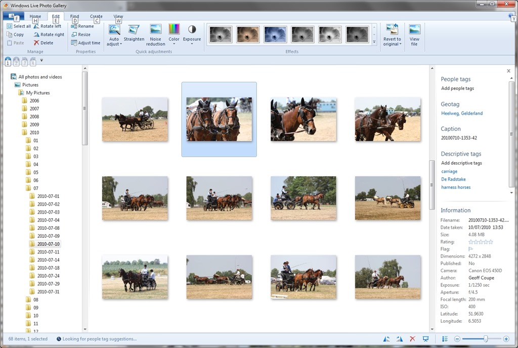 I have to say that the Lightroom tools for editing and developing photos (especially those in RAW format) are far in advance of anything that IDimager or WLPG possess. So while I could continue to use IDimager for metadata work, I could supplement that with the image adjustment tools of Lightroom 4. Frankly, the other modules of Lightroom (Map, Book, Print and Web) are of little use to me; my other tools give me all that I require in those areas. So, are the image adjustment tools of Lightroom alone worth an investment of 130 Euros to me? If I were heavily into manipulating my images using the RAW format, then, yes, very probably. But at the moment? To be honest, I’m not sure.