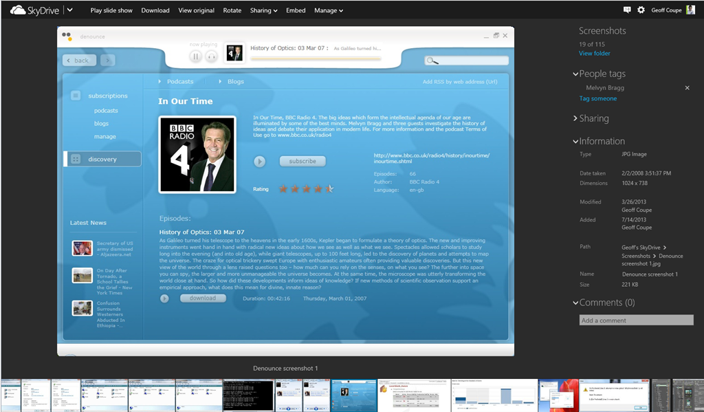 Update 8 October 2015: And now Tags added to photos via OneDrive online will get added to the photos’ metadata, and thus also be synced back down to the photos held in OneDrive on your PCs.