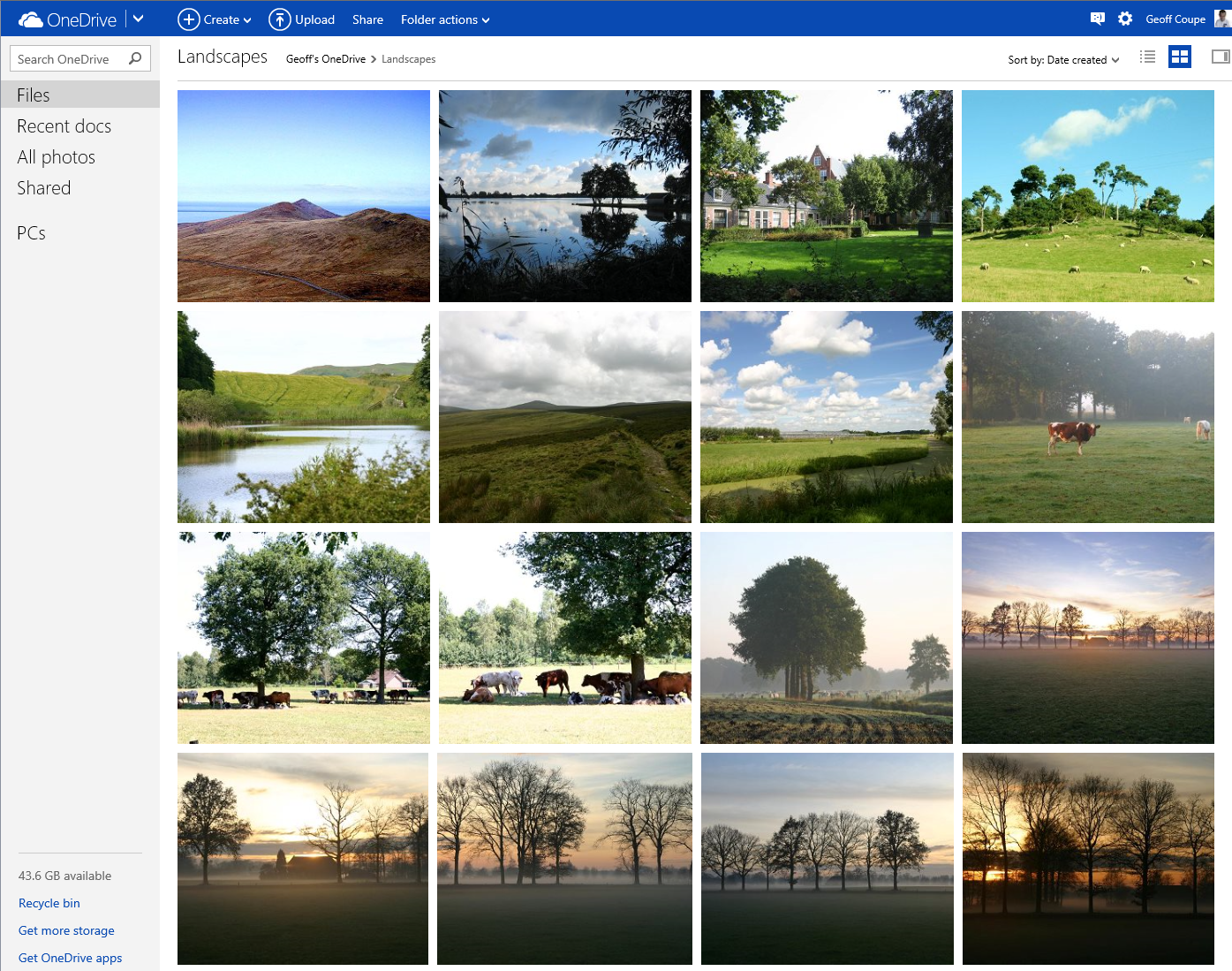 First, here’s the new view of a folder of photos on OneDrive; it has larger thumbnails than the previous version: