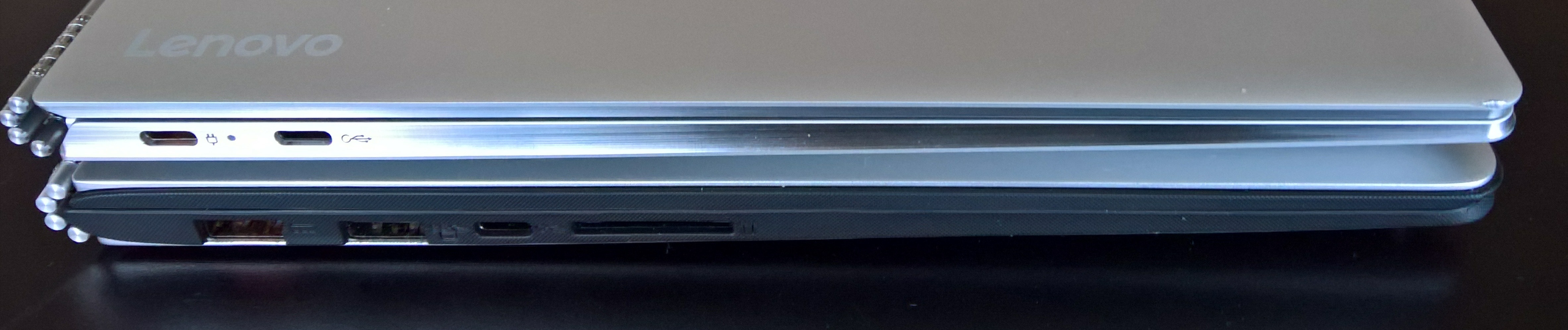 Here’s a comparison of the right-hand side of the Yoga 910 (on top) and the Yoga 900: