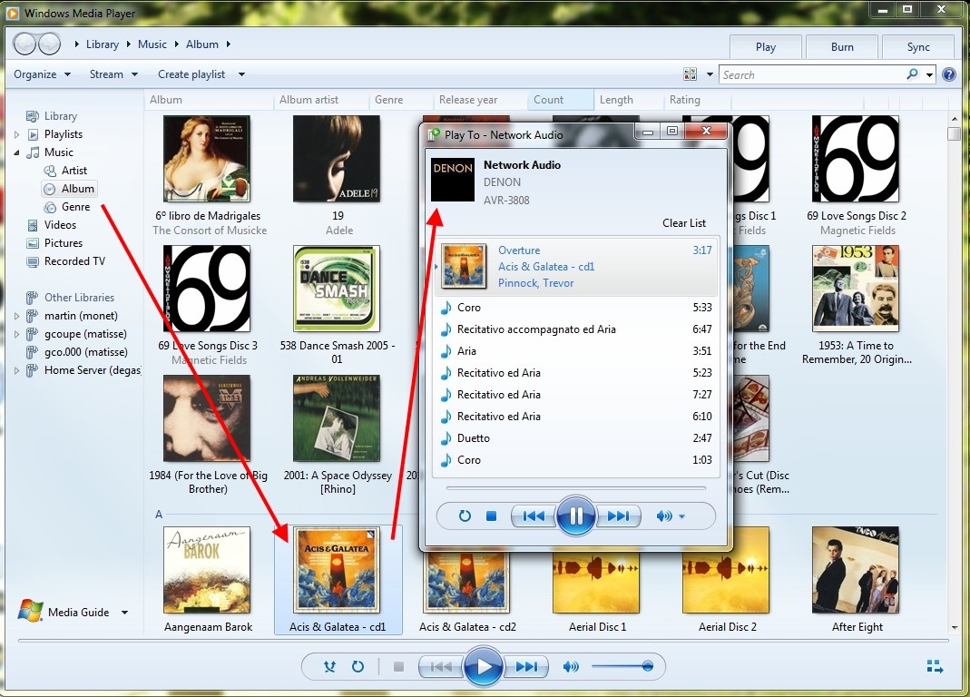 In my particular case, both the two scenarios shown above will work, that is, the DMS that is part of WHS 2011 will stream audio to other PCs in the home network, and to the Denon AVR3808.